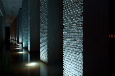 By day, sunlight reaches rows of prisms suspended in the courtyard, scattering moving colored reflections across walls and ground. By night, a weather station on the rooftop records the strength and direction of the wind. This data is translated into a luminous movement running behind the colonnade, visible from the public space. When the wind blows, the light moves; when it falls still, everything becomes quiet. When the wind blows, the light moves; when it falls still, everything becomes quiet. As by day, the night effects appear according to the meteorological forces at play.